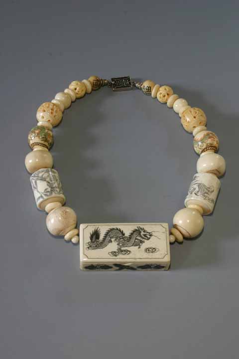 Exquisite scrimshaw dragon box (which can be opened), paired with hand-carved, etched and painted